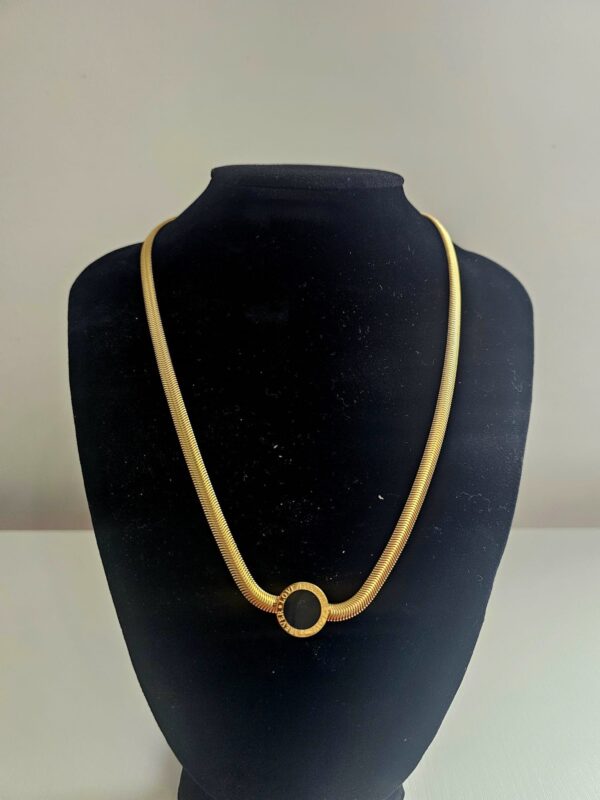 Introducing the "Midnight Majesty" Necklace – a statement piece that exudes bold elegance in both gold-plated and silver variations. This thick, eye-catching necklace features a central black stone, adding a touch of mystery and sophistication to its design. Measuring 18 inches in length, the necklace sits comfortably along the collarbone, while a 2-inch extension ensures an adjustable fit, allowing you to tailor it to your preferred length and style.