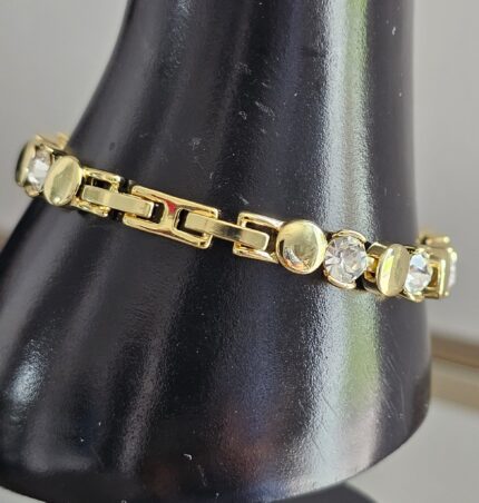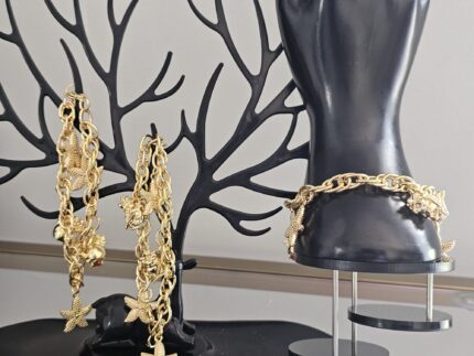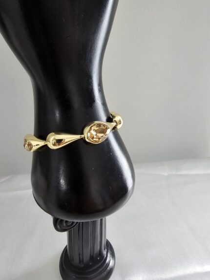The Golden Raindrop Bracelet is a captivating piece crafted from gold-plated stainless steel, designed to evoke the delicate beauty of raindrops shimmering in the light. This bracelet combines elegant simplicity with a touch of glamour, making it a standout accessory.