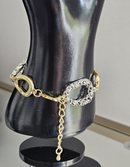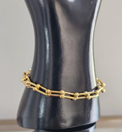 The Golden Geometric Bracelet is a striking piece crafted from gold-plated stainless steel, designed to showcase a blend of bold geometric shapes and elegant finishes. This bracelet features a sophisticated arrangement of square links, combining both large and small elements to create a modern, eye-catching accessory.