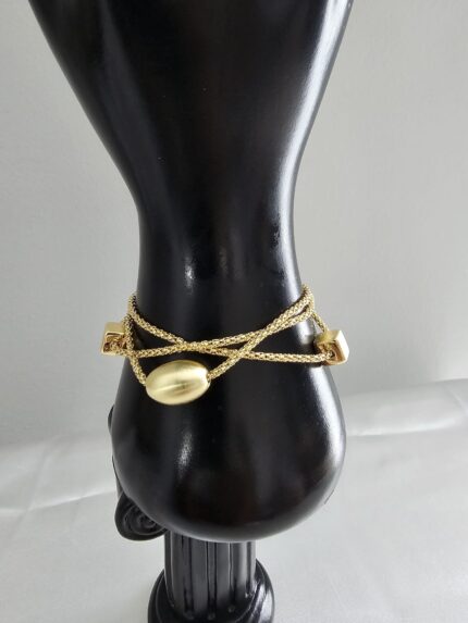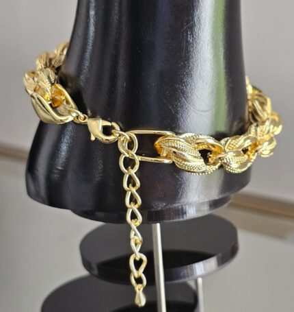 The Twisted Harmony Bracelet is a beautifully crafted piece of jewelry made from high-quality stainless steel, offering both elegance and durability. This bracelet showcases a sophisticated design of intertwined strands, which are meticulously twisted together to create a fluid, dynamic texture. The twisted strands form a cohesive and visually engaging pattern, giving the bracelet a sense of movement and depth.