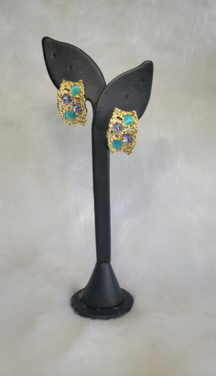 The Twilight Harmony is a stunning earring that beautifully combines the enchanting hues of marbled purple and pink stones with the elegance of non-tarnish gold plating. Each earring features a harmonious blend of these two colors, creating a mesmerizing effect that captures the serene and magical essence of twilight.