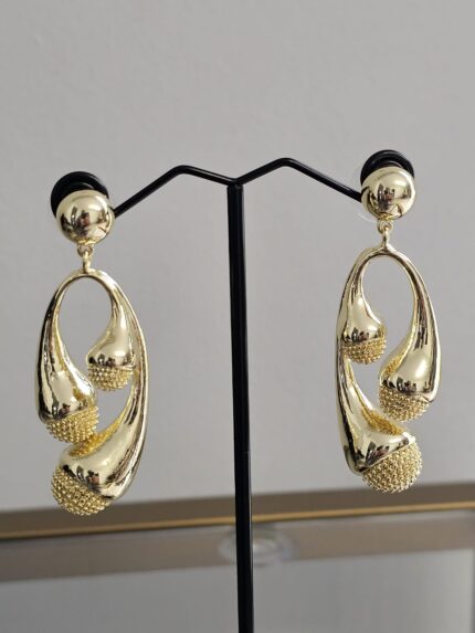 Introducing the Golden Mirage earrings, a captivating blend of artistry and elegance. These earrings are crafted from high-quality, non-tarnish gold-plated material, ensuring they maintain their radiant shine over time. The design features a unique, abstract shape that evokes a sense of mystery and allure.