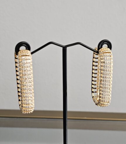 Introducing the Golden Stardust Loop earrings, a perfect blend of elegance and sparkle. These earrings feature a classic loop design, crafted from high-quality, non-tarnish gold-plated material, ensuring they maintain their radiant shine over time. Adorning the loop are tiny silver stones, each meticulously set to create a shimmering effect.