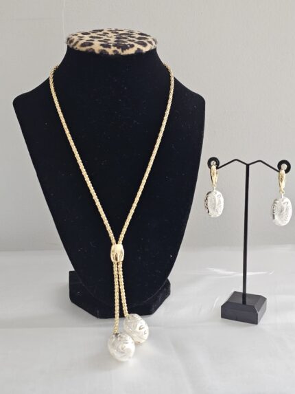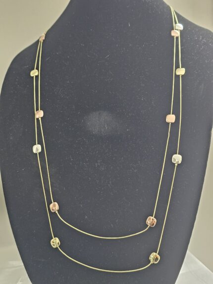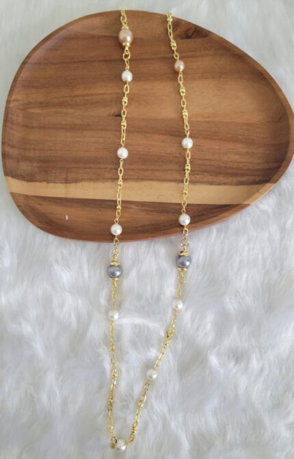 The Tricolor Enchantment Long Chain is a captivating piece of jewelry that beautifully combines the vibrant hues of red, black, and white clovers and butterflies.