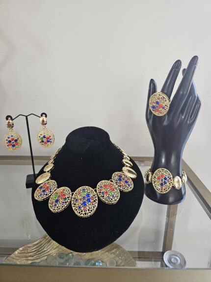 The Trinity Ball-Toned Jewelry Set is a striking collection that masterfully combines three complementary tones—gold, silver, and rose gold—into a cohesive, modern design. Each piece in this set features spherical ball accents, symbolizing unity and balance, while the three-tone color scheme adds depth and visual interest to the overall look.