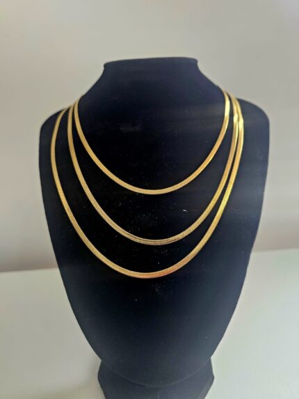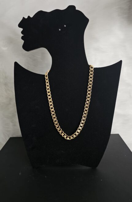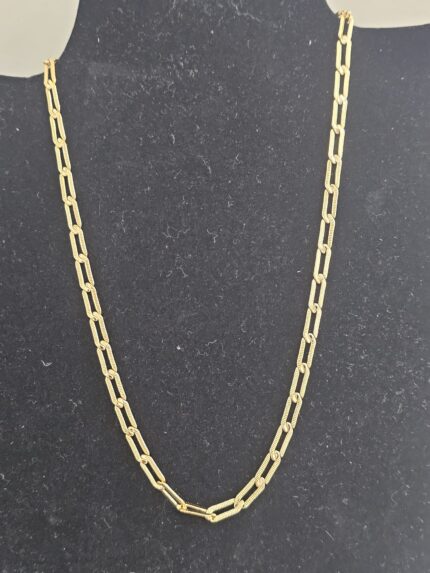 Introducing the “Golden Luxe Chain Necklace”, a stunning piece that combines elegance with durability. This necklace features a gold-plated, non-tarnish design, ensuring it maintains its brilliant shine and luxurious appearance over time. The chain is 18 inches long, making it a perfect length to complement various necklines and styles.
