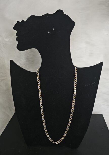 Introducing the “Dual Harmony Necklace”, a stunning piece that beautifully combines the elegance of gold and silver tones. This necklace features alternating links of gold and silver, creating a harmonious and eye-catching pattern along its entire length. Measuring 21 inches long, it offers a perfect balance between sophistication and versatility, making it suitable for various necklines and styles.
