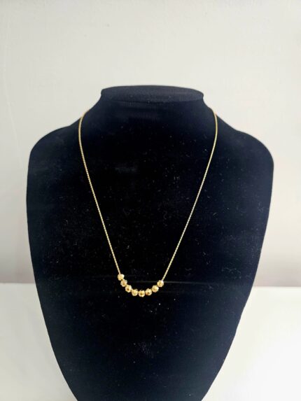 Introducing the "Golden Dots" Necklace – a chic and modern piece that brings minimalist elegance to life. This gold-plated necklace features a delicate arrangement of eight tiny, evenly spaced balls along the chain, creating a subtle yet eye-catching design. With a length of 17 inches, the necklace rests gracefully at the base of the neck, while a 3-inch extension allows for a customizable fit, ensuring comfort and flexibility for different necklines.