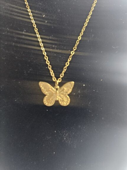 Introducing the "Ethereal Flight" Necklace – a delicate and enchanting piece that captures the beauty of nature in its purest form. This gold-plated necklace features a gracefully detailed butterfly pendant, symbolizing transformation and freedom. The necklace is 17 inches in length, resting just at the base of the neck, while a 3-inch extension ensures a customizable fit, allowing you to adjust it to your preferred length for comfort and style.
