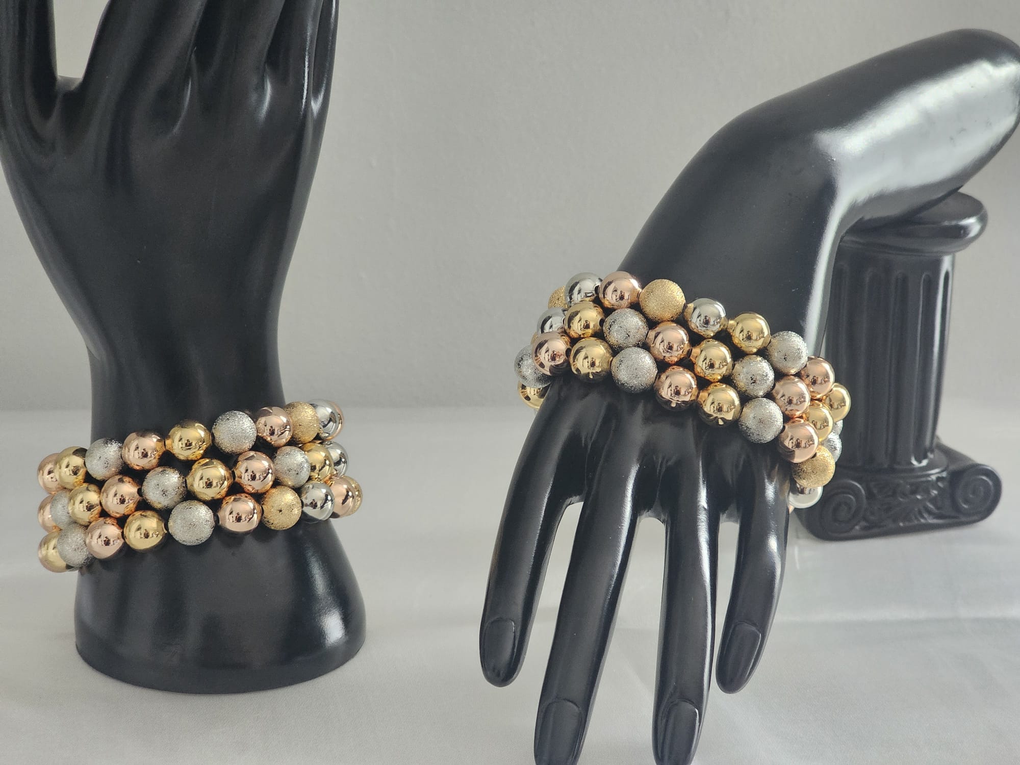 This 3 in 1 non-tarnish, gold plated three toned elastic bracelet is a versatile accessory that combines three different styles or colors into one stretchy, comfortable band. It’s perfect for adding a touch of variety to your look with ease. This product is versatile as the three-in-one design allows you to enjoy multiple styles in one piece. It is made from high-quality, durable elastic that is crafted to withstand daily use, which is perfect for everyday wear. This bracelet is perfect for those who love to mix and match their accessories without the hassle of managing multiple pieces. It’s a great addition to any jewelry collection, offering both style and functionality.