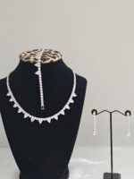 This long chain necklace with earrings is a stylish and elegant jewelry set designed to enhance any outfit.