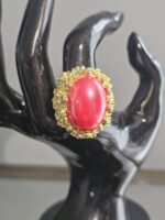 This coral and gold ring is a luxurious and eye-catching piece of jewelry that combines the richness of gold with the royal allure of coral.