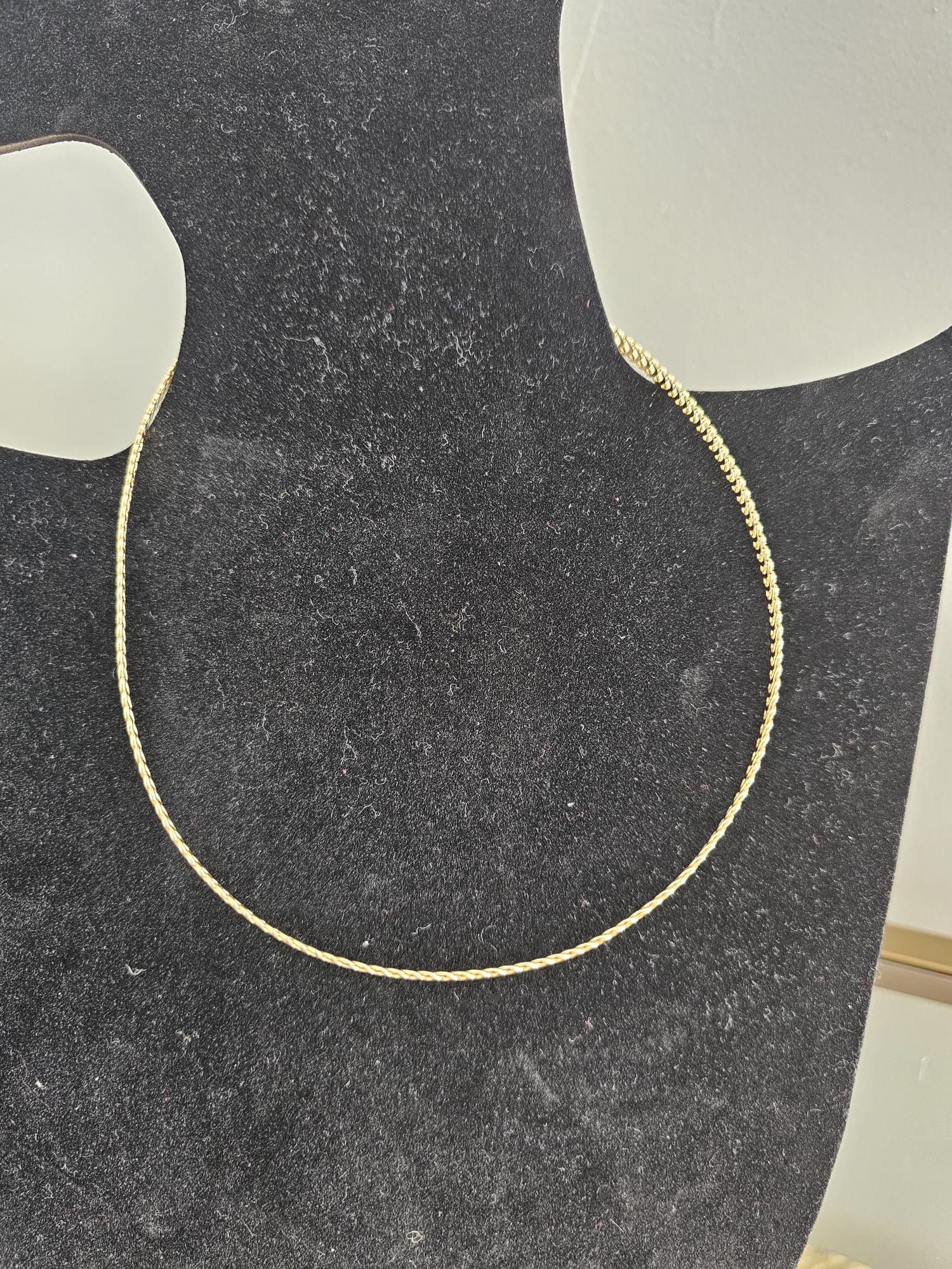 Introducing the “Golden Wave Cord”, a uniquely designed piece that adds a touch of elegance and sophistication to any pendant you choose to pair it with. This necklace features a high-quality, gold-plated cord with a distinctive wave-like pattern, giving it a dynamic and eye-catching appearance. The gold plating ensures that the cord remains untarnished, maintaining its radiant shine over time.