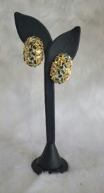 The Chromatic Fusion Earrings are non-tarnish gold-plated accessories that feature a dazzling array of gemstones, creating a vibrant, color-shifting effect.
