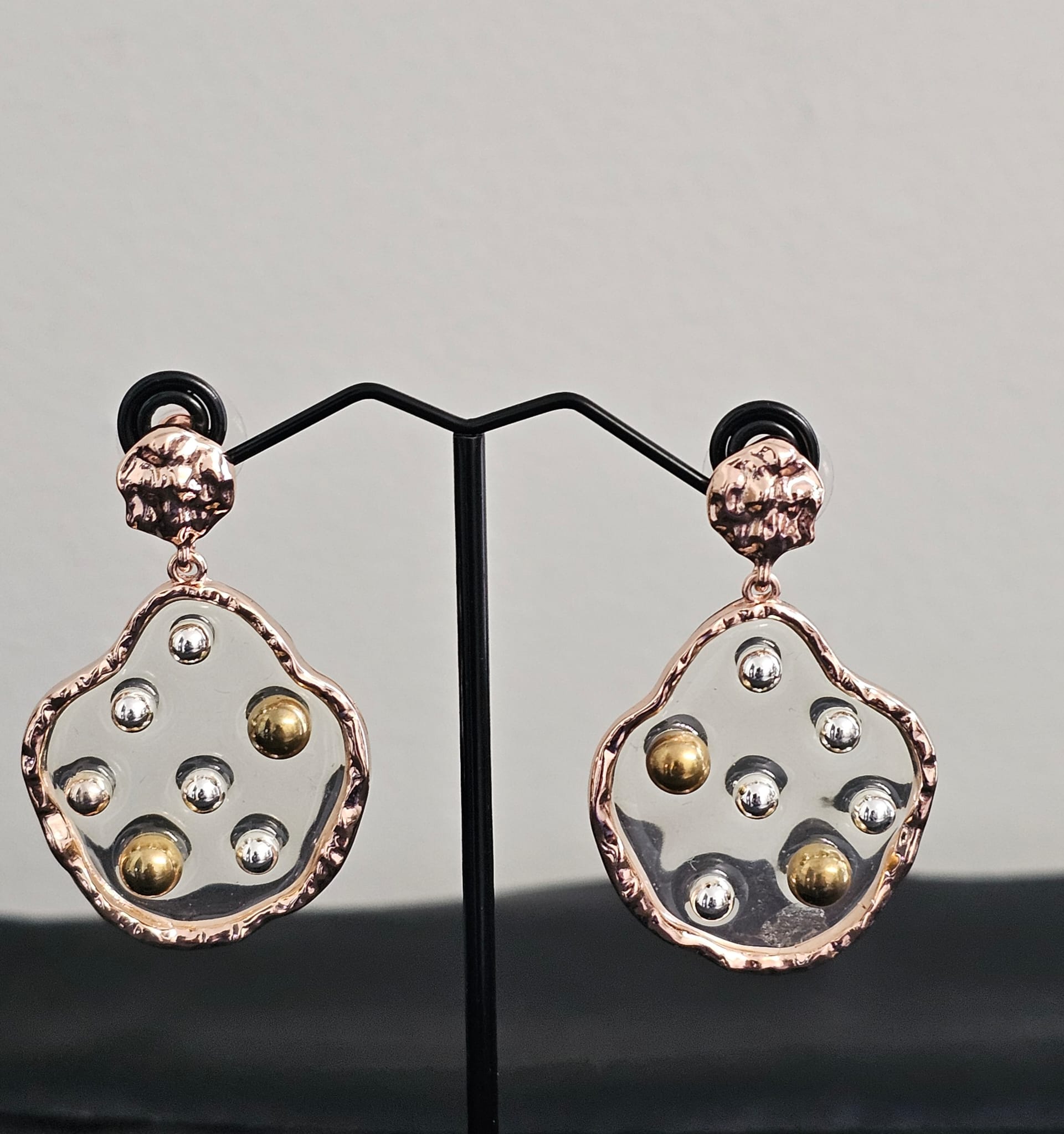 The combination of bronze, gold, and silver creates a harmonious interplay of colors and textures, making these earrings a true statement piece. The textured finish of the bronze teardrop adds depth and dimension, ensuring that these earrings catch the light beautifully from every angle.