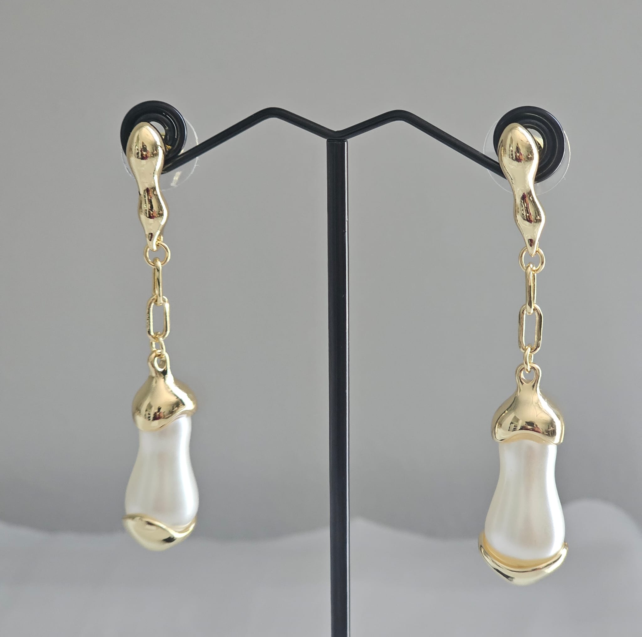 The Encapsulated Pearl Drop Earrings are a stunning pair of non-tarnish, gold-plated earrings designed to maintain their elegance and shine over time.