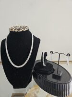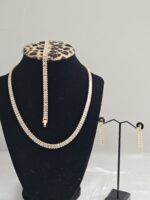 This 2 in 1 two-toned party necklace with earrings is a chic and versatile jewelry set designed to make a bold statement at any event.