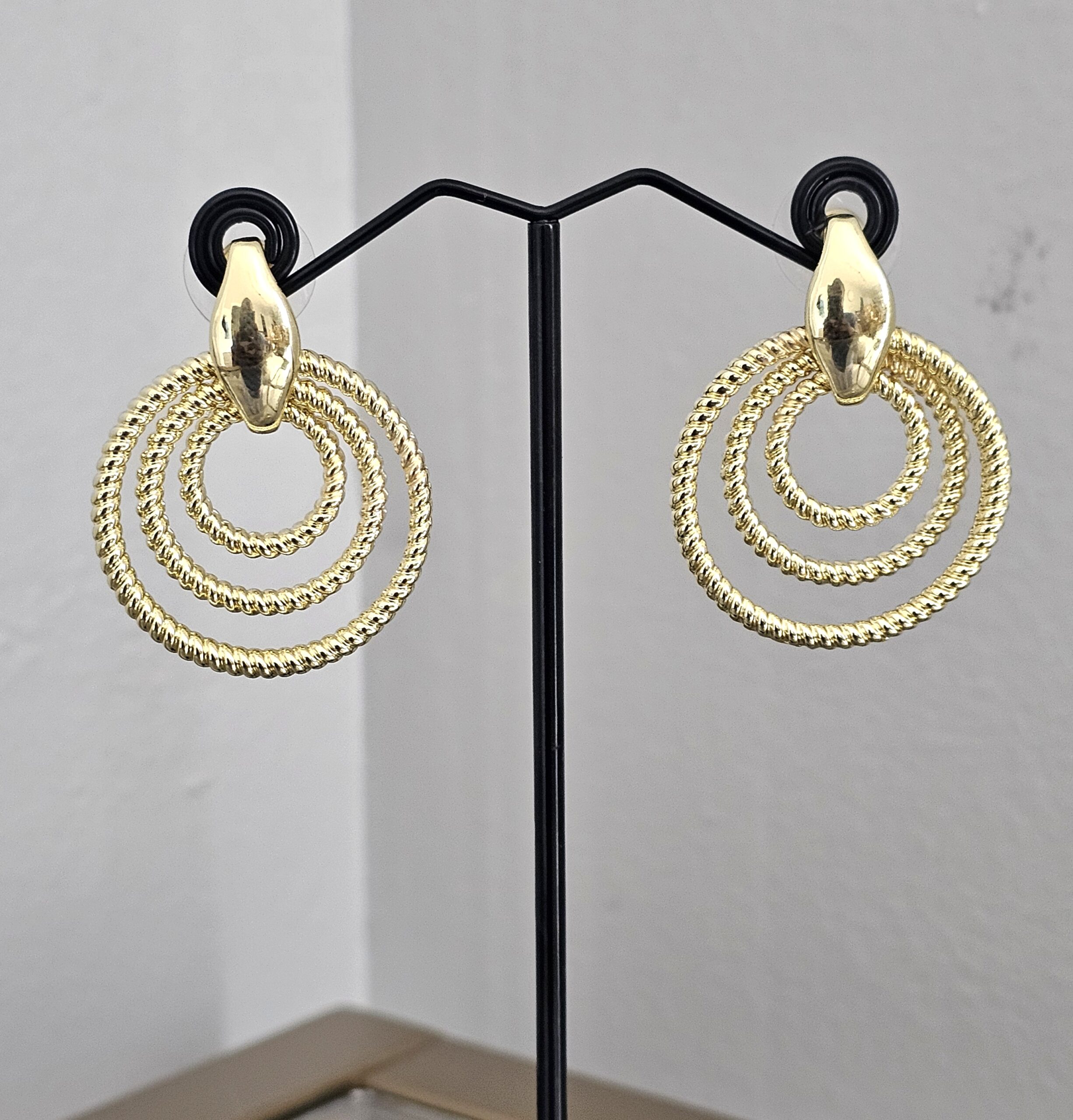 The Eternal Circles earrings are a stunning addition to any jewelry collection. These earrings feature multiple interlocking circles, symbolizing infinity and unity. Crafted with high-quality, non-tarnish gold plating, they maintain their brilliant shine and resist discoloration over time. These medium sized hoops are perfect for both casual and formal occasions. The polished to a high shine, giving them a radiant and sophisticated appearance. Lastly, it is ideal for layering with other earrings or wearing alone for a minimalist statement.