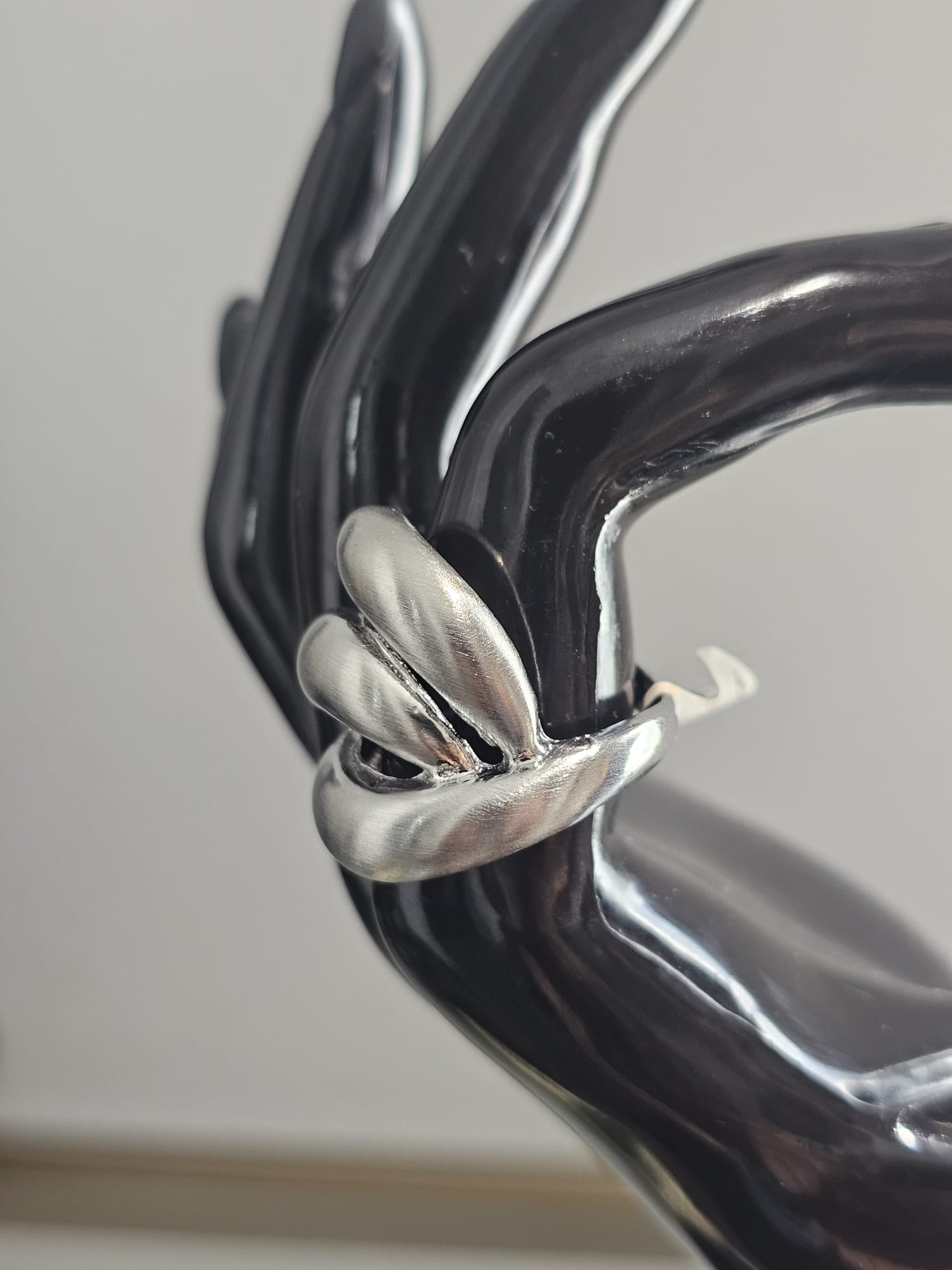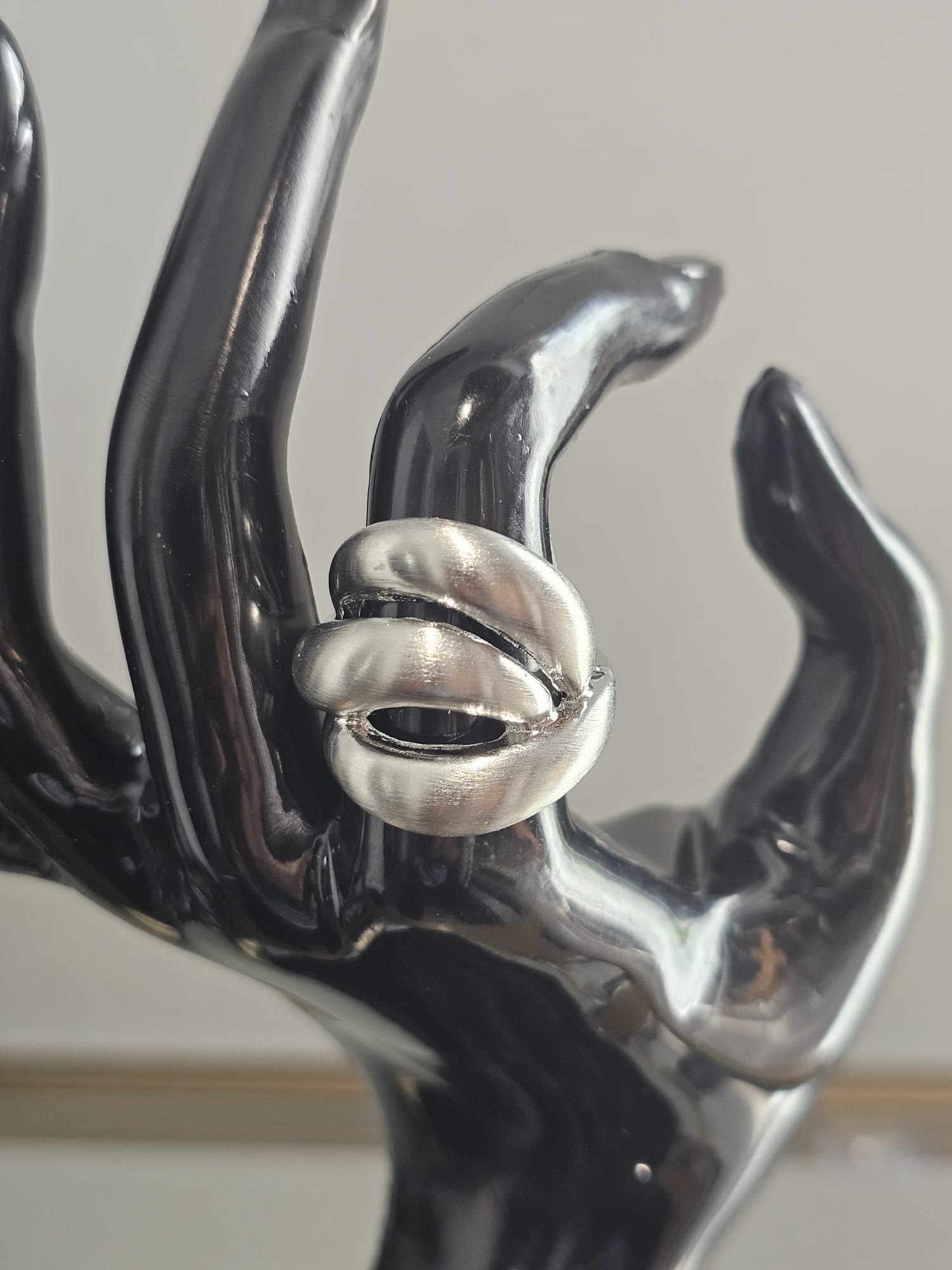 The “Eternal Flow Ring” is a stunning piece crafted from high-quality, non-tarnish silver. Its design features interlocking parts that create a sense of motion and fluidity, giving the ring a dynamic and modern aesthetic.