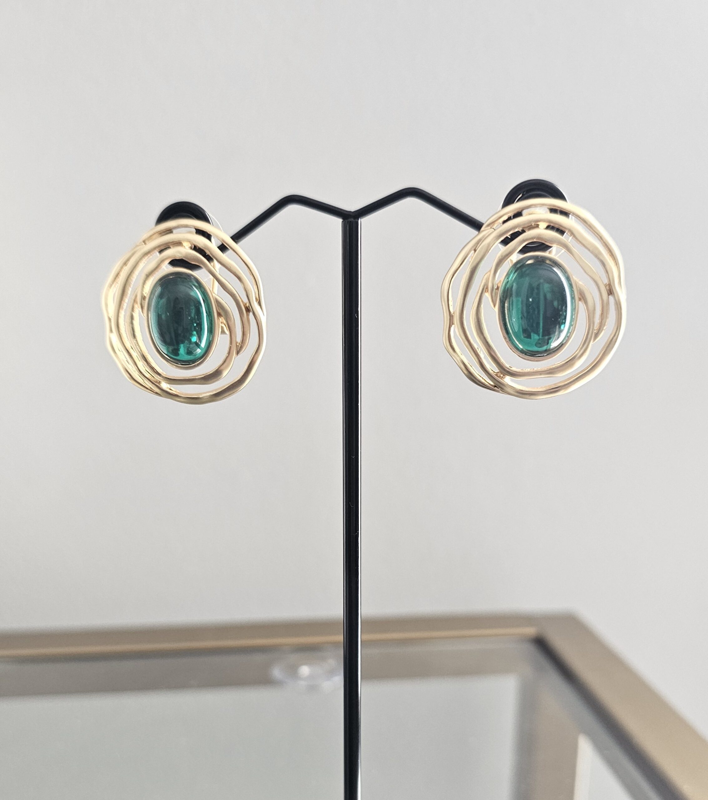 The Golden Embrace Gemstone Earrings are a luxurious and elegant pair of earrings designed to showcase the beauty of a central gemstone encapsulated in gold.