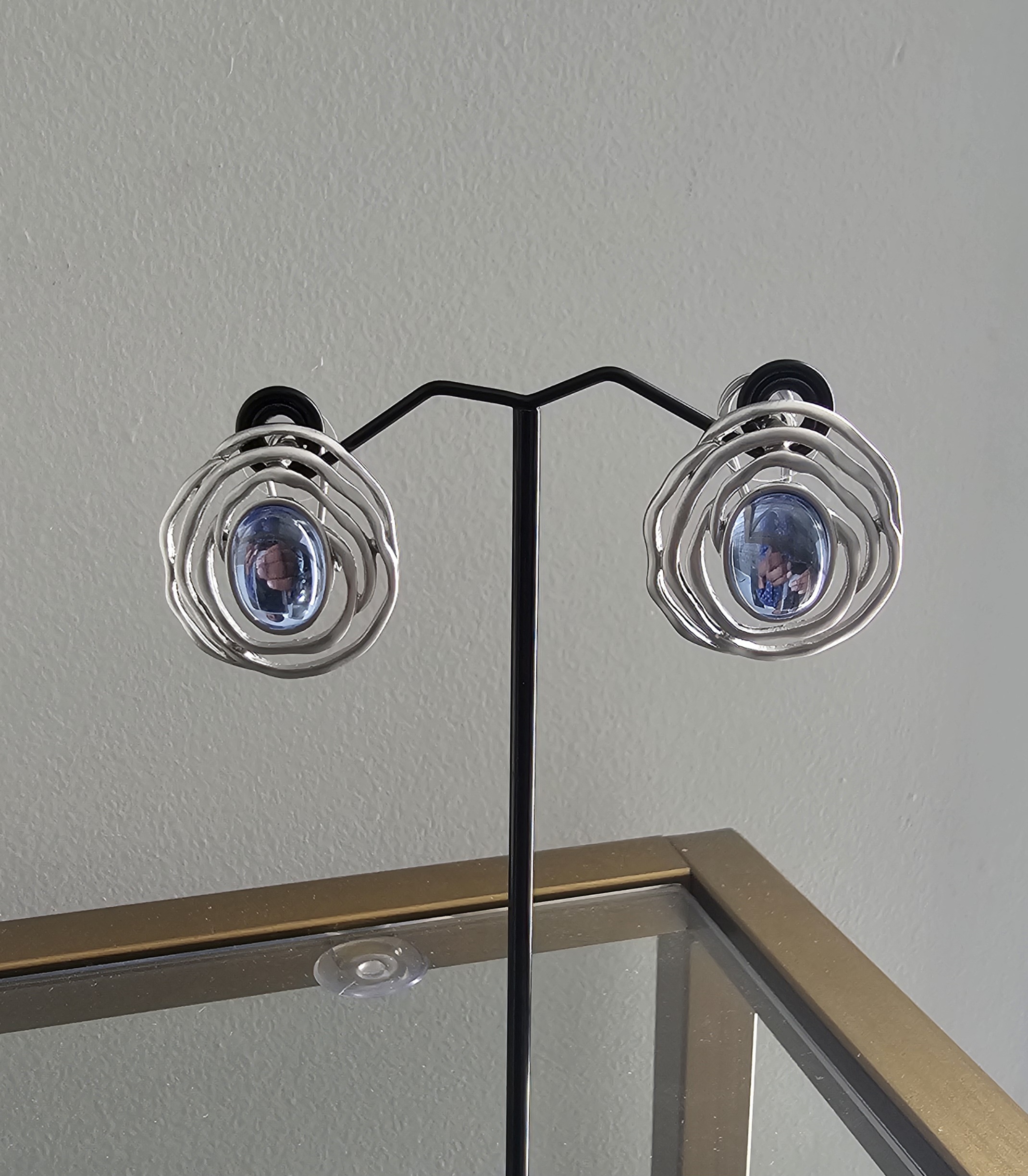 The Luminous Gem Silver Earring is a captivating piece of jewelry that features a central gemstone set in a sleek, polished silver frame.