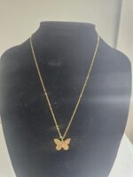 The “Ethereal Flight” necklace’s butterfly pendant is finely crafted with intricate detailing, giving it a lifelike quality that glistens with every movement. The gold-plated finish adds a warm, radiant glow, making it a perfect accessory for both day and evening wear. Whether paired with a casual top or a more formal dress, this necklace adds a touch of whimsy and elegance to any outfit, evoking a sense of lightness and grace.
