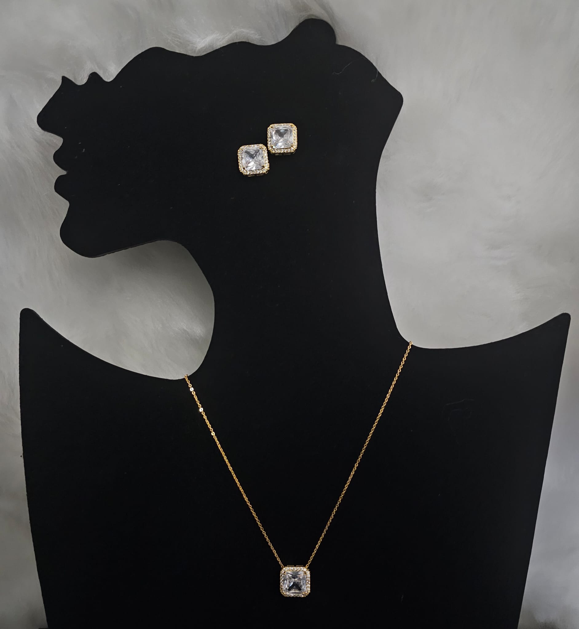 The Ethereal Glamour set is a dazzling jewelry ensemble that exudes sophistication and sparkle. Crafted from non-tarnish stainless steel, this set features a stunning earring and necklace combination, designed to make a statement with its luxurious appearance.