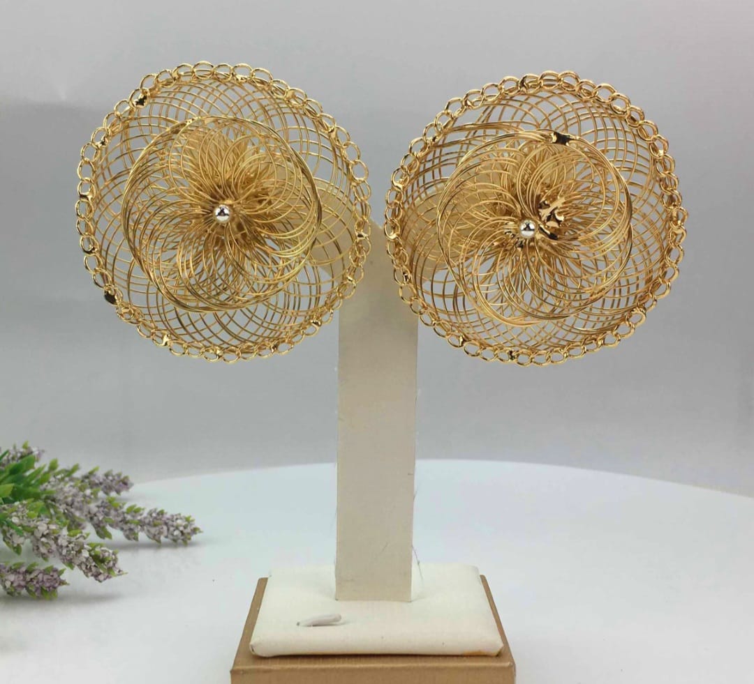 The Floral Fan Blossom Earrings are a captivating pair of non-tarnish, gold-plated earrings designed to maintain their beauty and elegance over time.