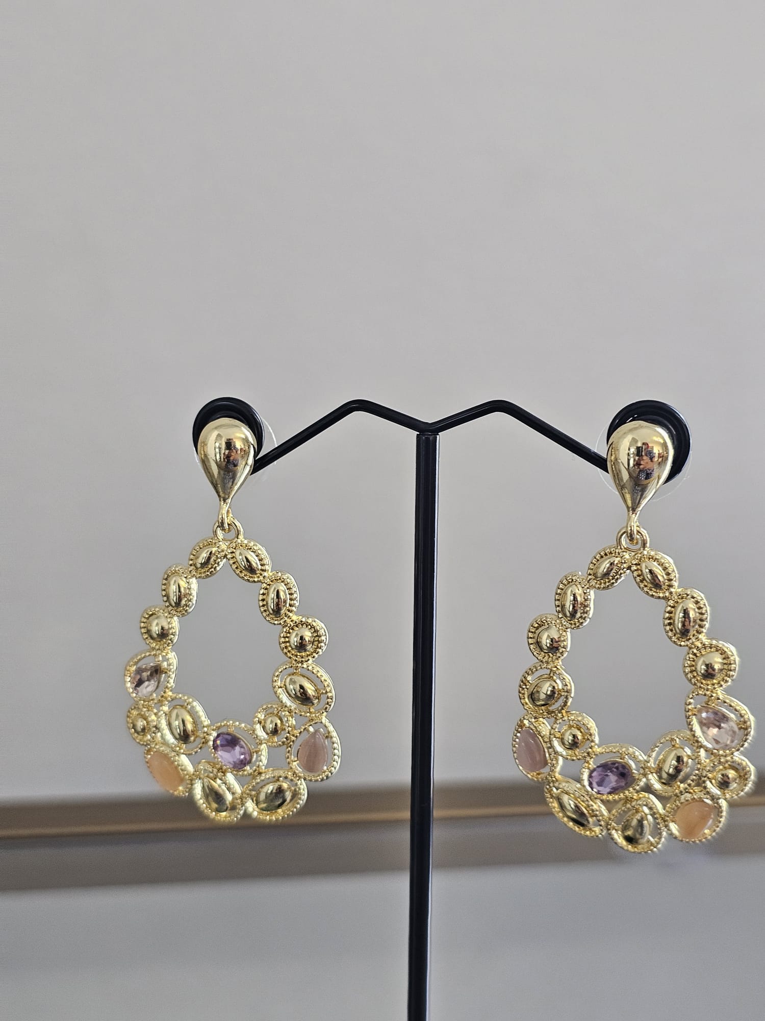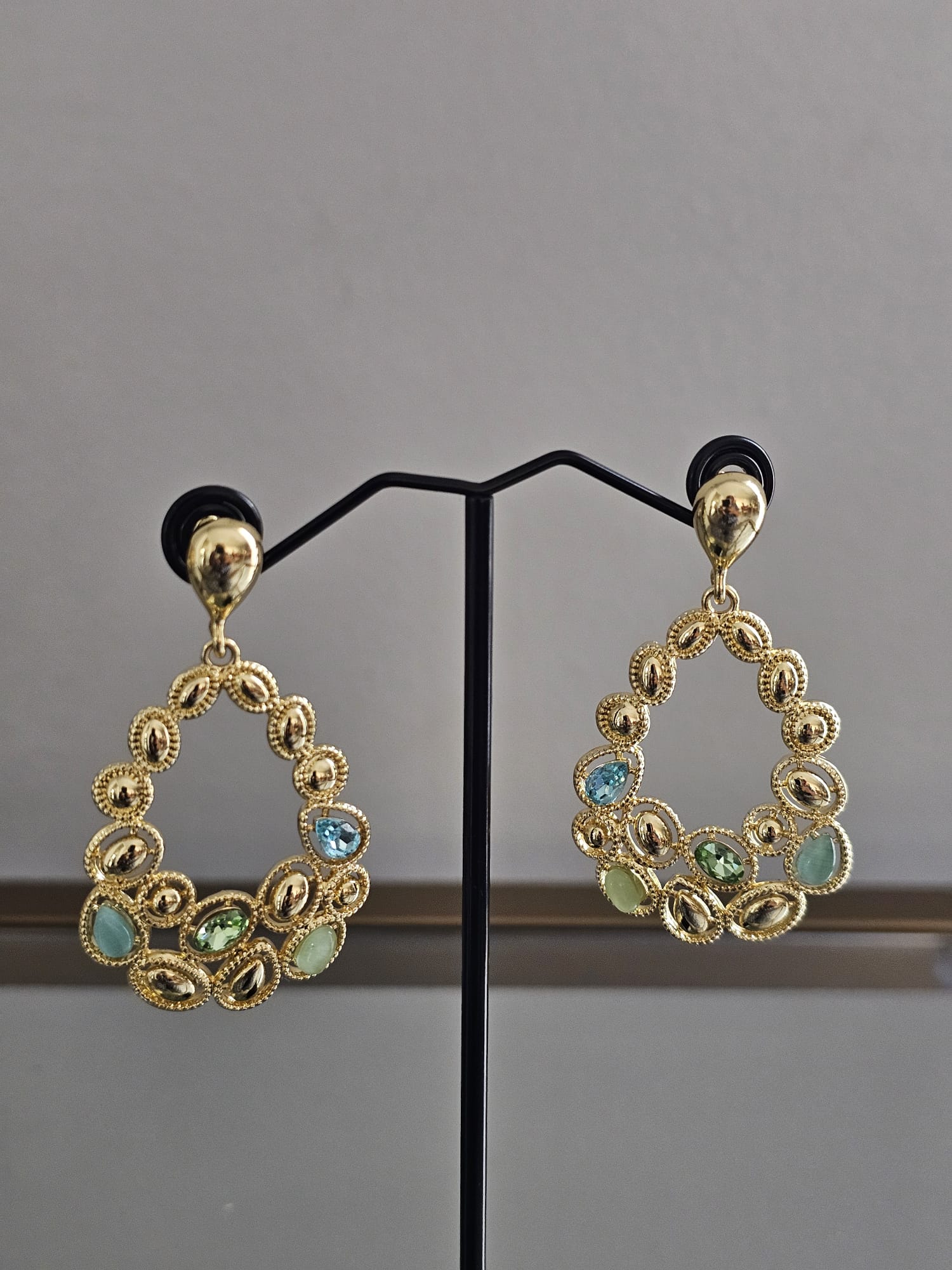 The Gemstone Cascade Earring is an exquisite piece of jewelry that combines elegance with a touch of glamour. These earrings feature an open teardrop shape, crafted from non-tarnish gold-plated metal, ensuring they maintain their radiant shine over time.