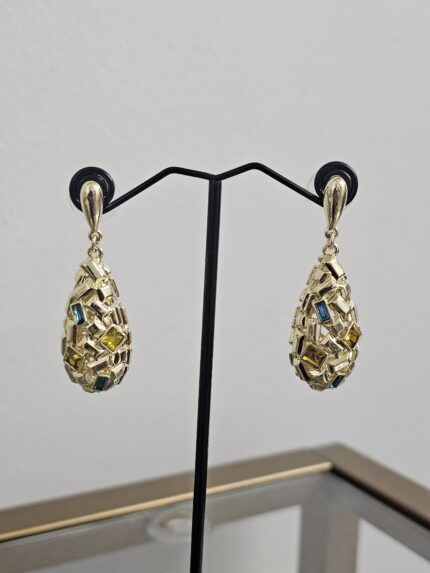 The Gemstone Harmony Drops earrings are a captivating blend of geometric elegance and sparkling gemstones.