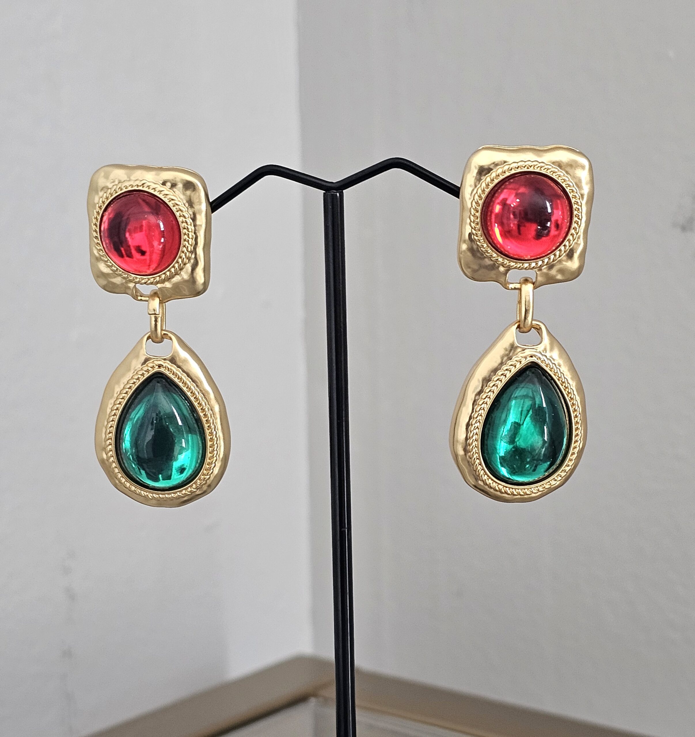 The Gemstone Harmony Drops earrings are a captivating blend of geometric elegance and sparkling gemstones.