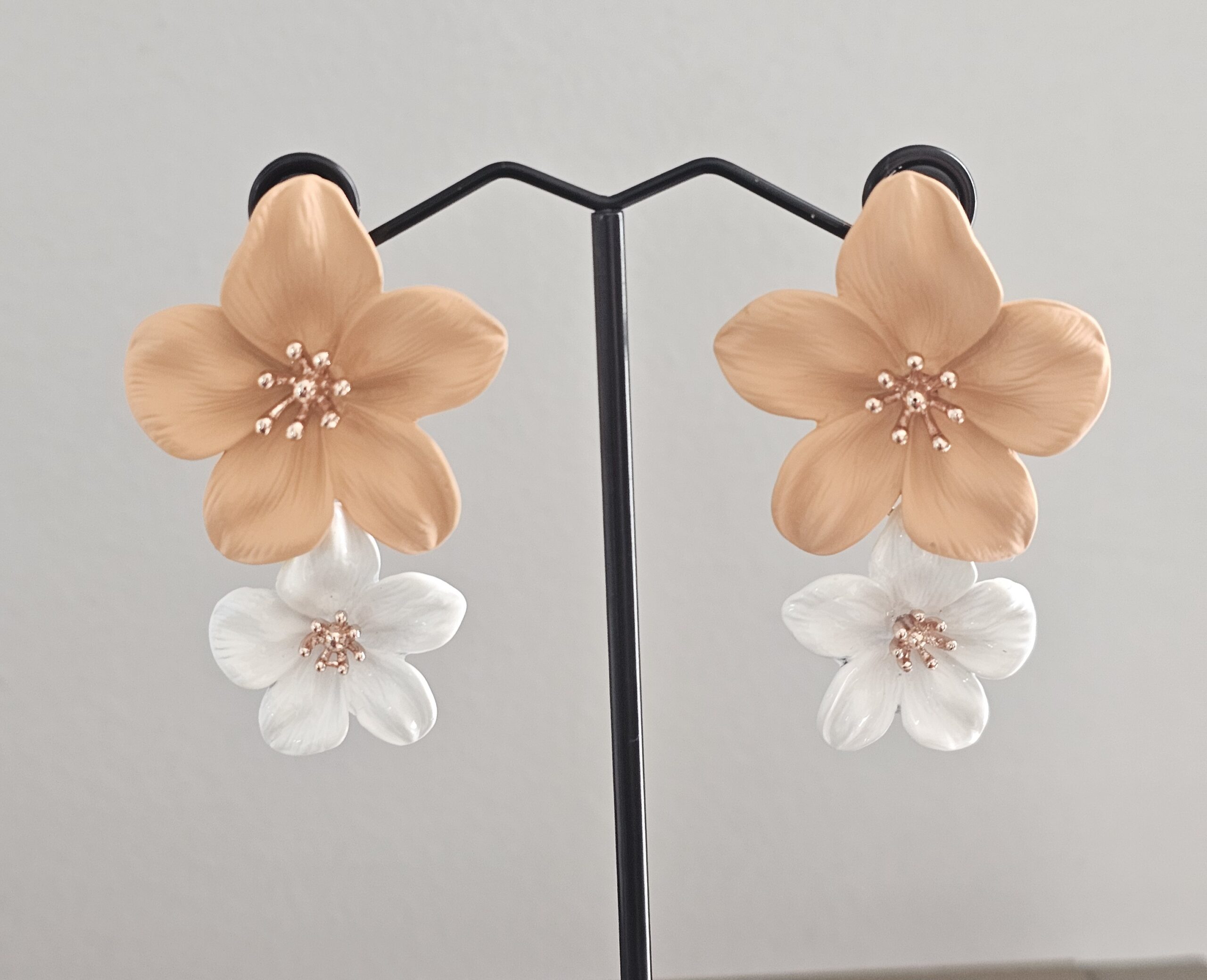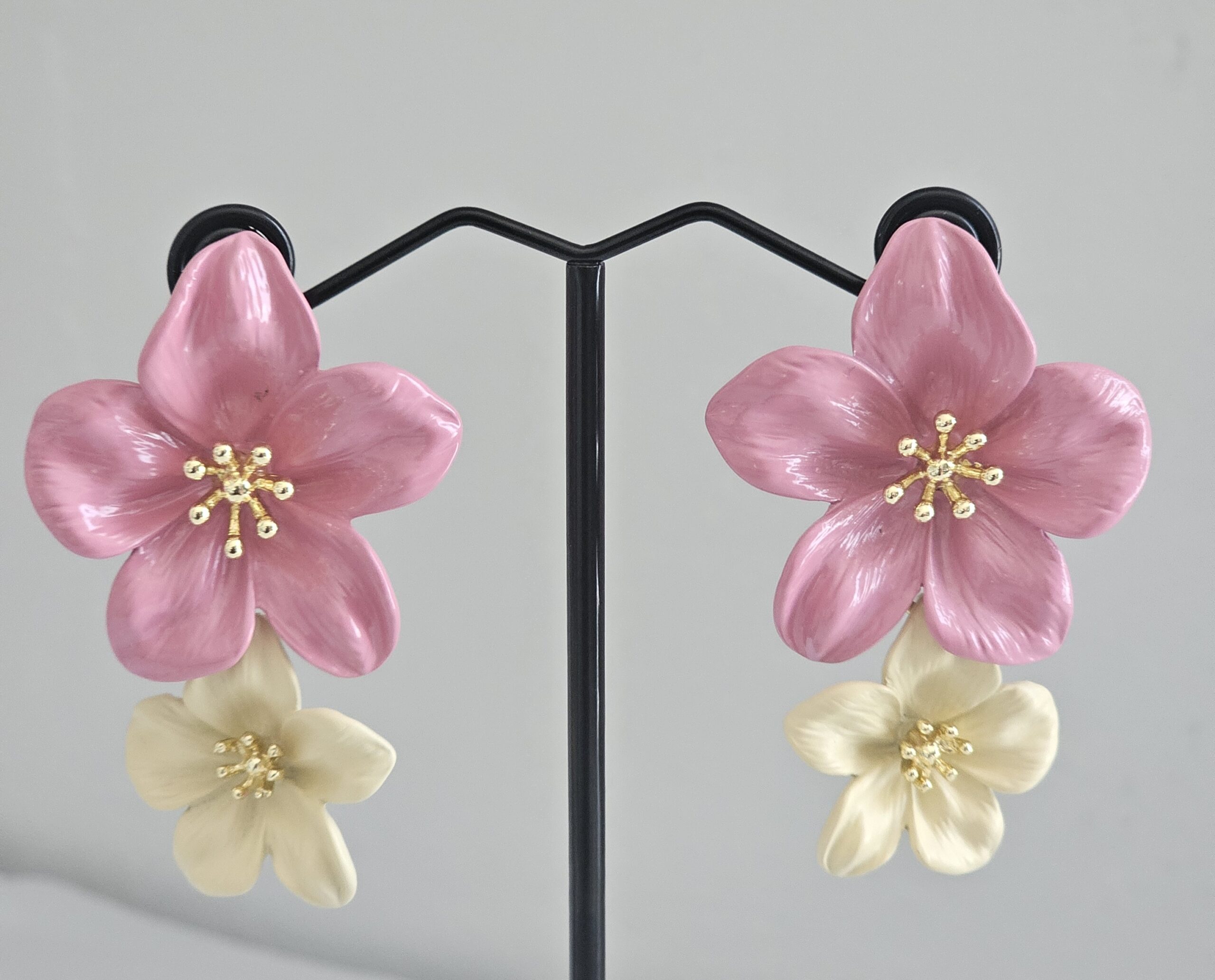 The Golden Blossom Duo Earrings are a stunning pair of non-tarnish, gold-plated earrings designed to captivate and charm. The earring features two beautifully crafted flowers, symbolizing elegance and natural beauty. At the center of each flower, there are gold prongs, which add a touch of luxury and brilliance to the design. The gold prongs not only secure the centerpiece but also enhance the overall aesthetic with their warm, golden hue. This earring is perfect for both everyday wear and special occasions, these earrings can effortlessly elevate any outfit, from casual to formal. Designed with comfort in mind, the earrings are lightweight and feature secure clasps to keep them in place throughout the day.