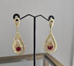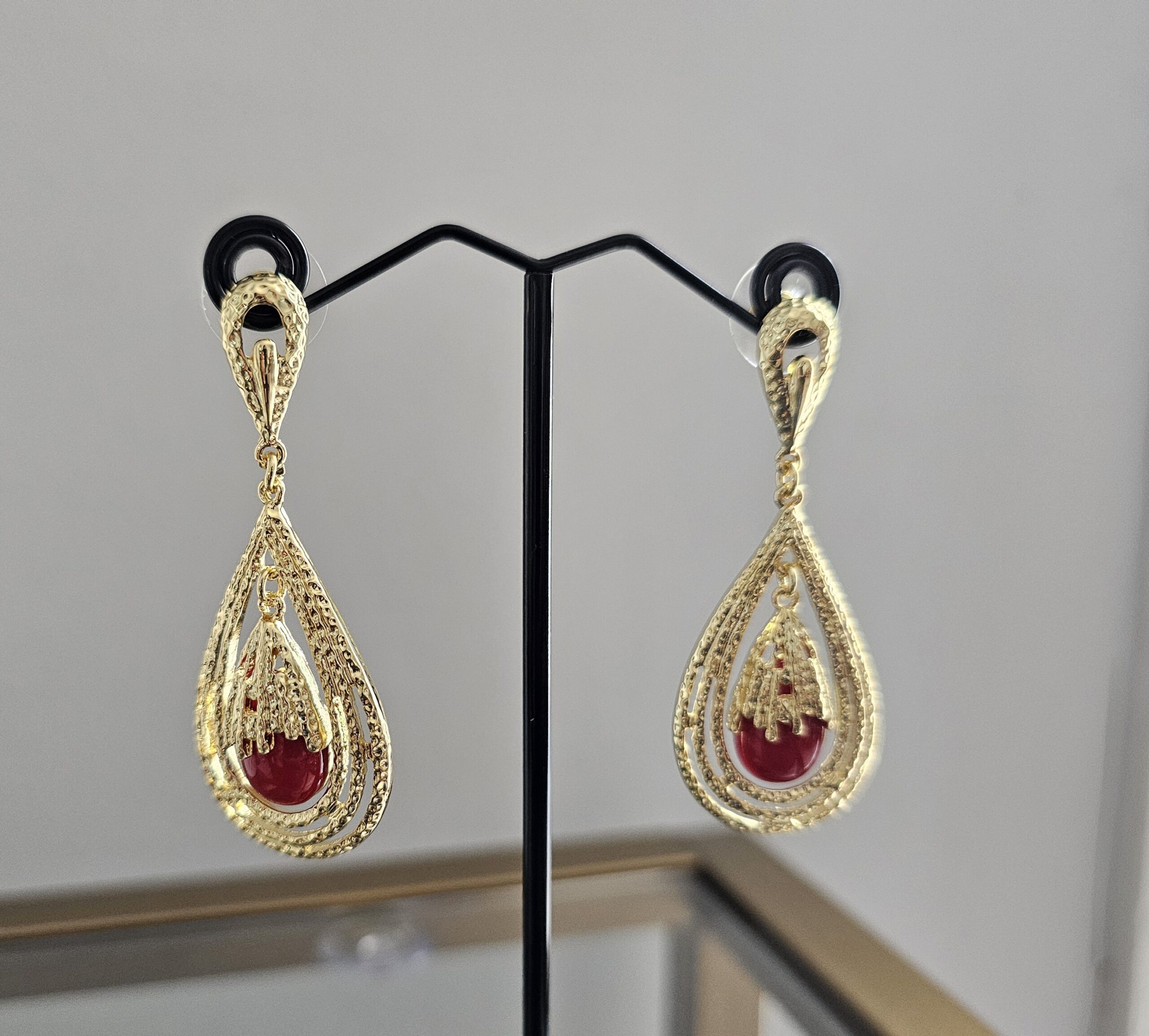 The Golden Embrace Gemstone Earrings are a luxurious and elegant pair of earrings designed to showcase the beauty of a central gemstone encapsulated in gold. Each earring features a stunning gemstone securely encapsulated within a gold setting. The teardrop gemstone is the focal point, with its brilliance and color enhanced by the surrounding gold. These earrings are perfect for both everyday wear and special occasions, adding a touch of luxury and sophistication to any outfit. They are also designed to be lightweight and comfortable for all-day wear, with secure clasps to keep them in place. The combination of a central gemstone and gold creates a classic and timeless look that never goes out of style.
