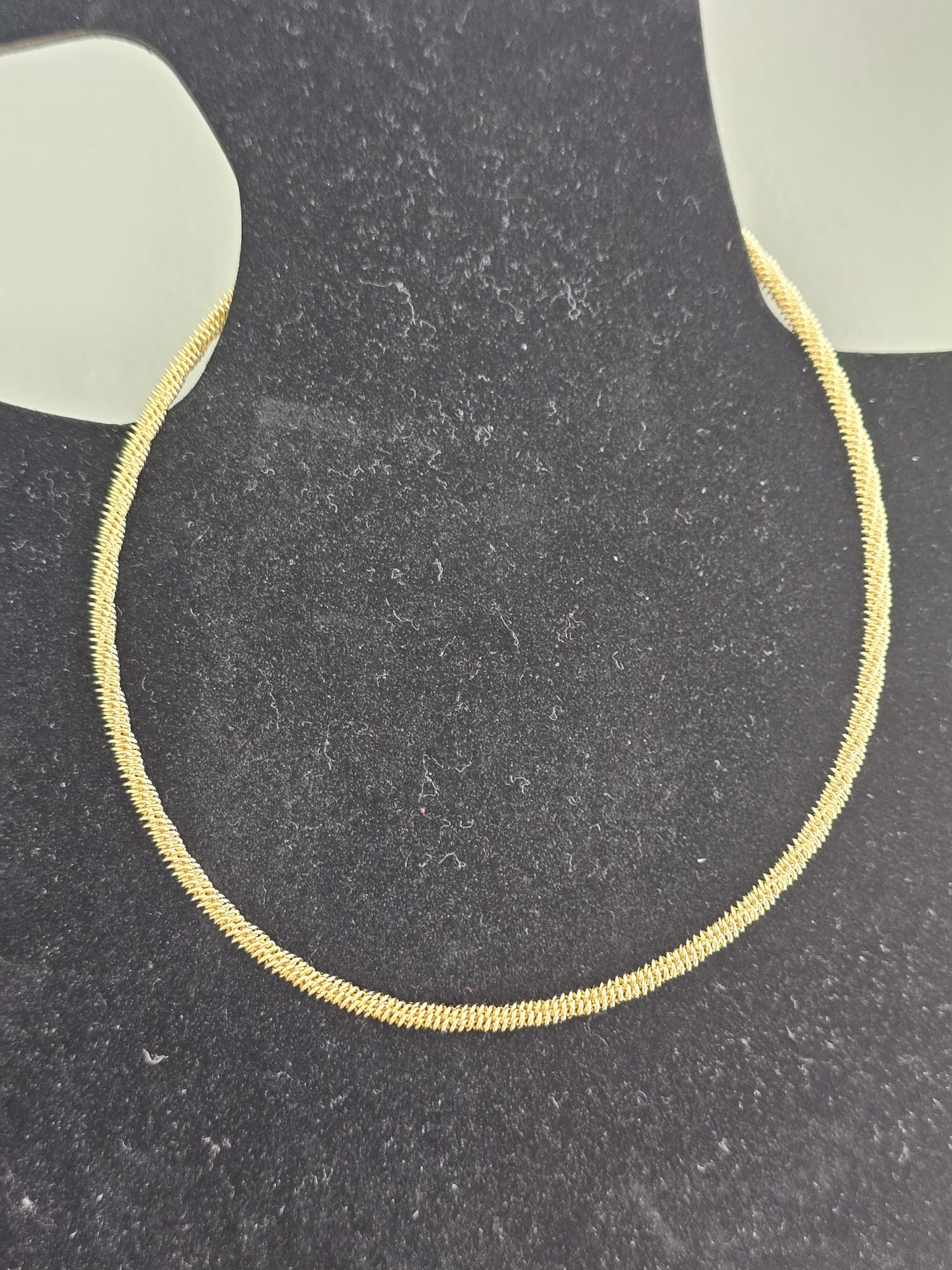 Introducing the “Golden Wave Cord”, a uniquely designed piece that adds a touch of elegance and sophistication to any pendant you choose to pair it with. This necklace features a high-quality, gold-plated cord with a distinctive wave-like pattern, giving it a dynamic and eye-catching appearance. The gold plating ensures that the cord remains untarnished, maintaining its radiant shine over time.