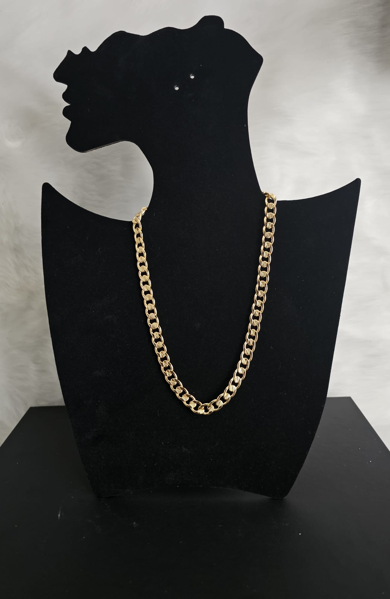 The Golden Luxe Chain Necklace is crafted with interlocking links, commonly known as a Cuban link chain. This design is characterized by its round and flattened looped links, creating a thick and sturdy appearance. The gold plating provides a lustrous finish, indicative of high-quality craftsmanship. Its non-tarnish feature ensures that the necklace remains a reliable and beautiful accessory for everyday wear or special occasions. Whether you’re dressing up for a formal event or adding a touch of sophistication to your daily attire, this necklace is sure to impress.