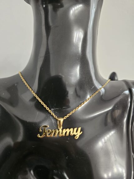 Introducing the “Temmy” Stainless Steel Gold Necklace, a stunning piece that combines timeless beauty with personal significance. This necklace features a gold-plated, non-tarnish nameplate that proudly displays the name “Temmy” in a cursive, flowing script.