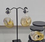 The earrings feature multiple interlopped circles, creating a dynamic and eye-catching pattern. The combination of gold and bronze tones adds depth and richness to the design, making these hoops a standout piece. Each circle is meticulously crafted to interlock seamlessly, creating a fluid and elegant look. The earrings are lightweight and comfortable, with a secure latch-back closure that ensures they stay in place throughout the day.