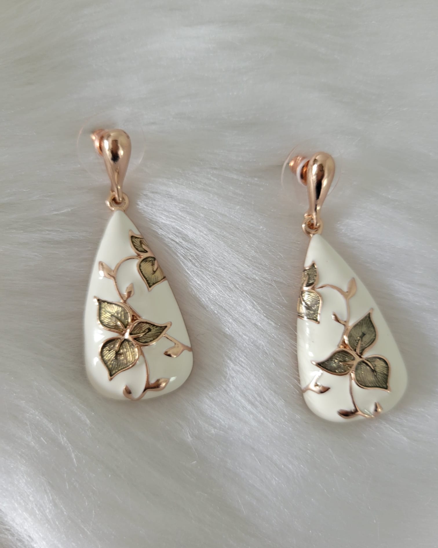 Ivory Garden is a captivating earring that beautifully combines the elegance of white with the intricate beauty of floral and vine patterns. The earring features a white enamel base that serves as a pristine canvas for the delicate gold-plated flowers and vines. Each flower and vine is meticulously crafted, adding depth and dimension to the design.