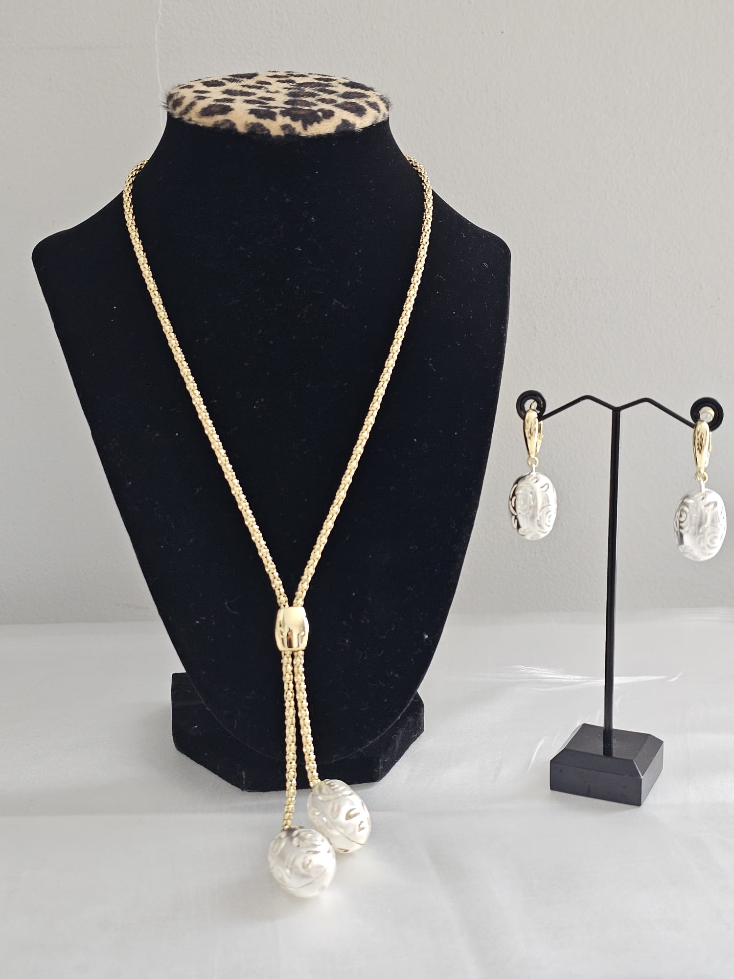 This long chain necklace with earrings is a stylish and elegant jewelry set designed to enhance any outfit.
