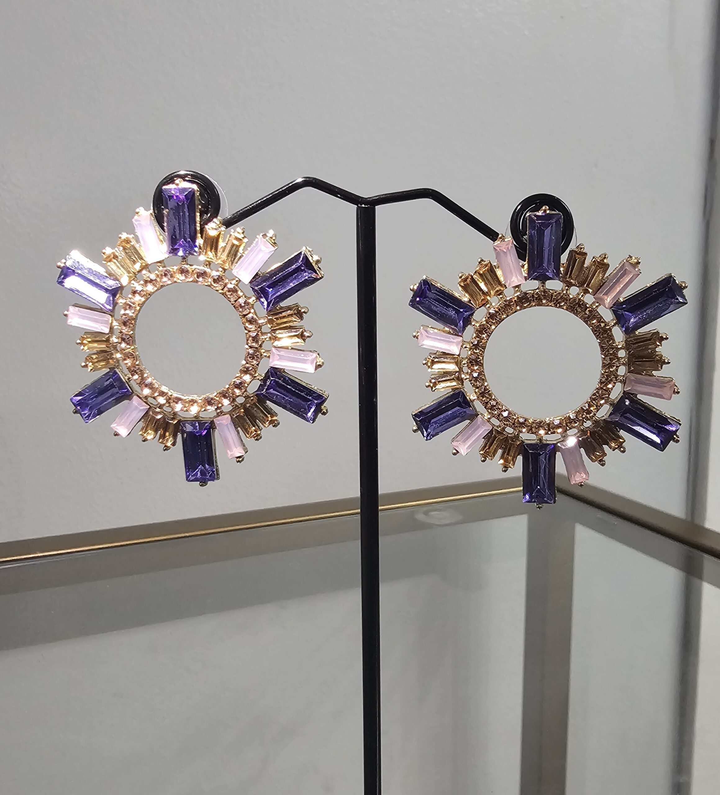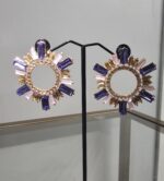 Each earring features a central gold circle, meticulously polished to a high shine. Radiating from this circle are brilliant gemstones, carefully set to create a halo effect. These gemstones catch and reflect light from every angle, adding a touch of sparkle and glamour to your look. Whether you choose gemstones like sparkling diamonds, vibrant sapphires, or rich emeralds, the effect is mesmerizing.