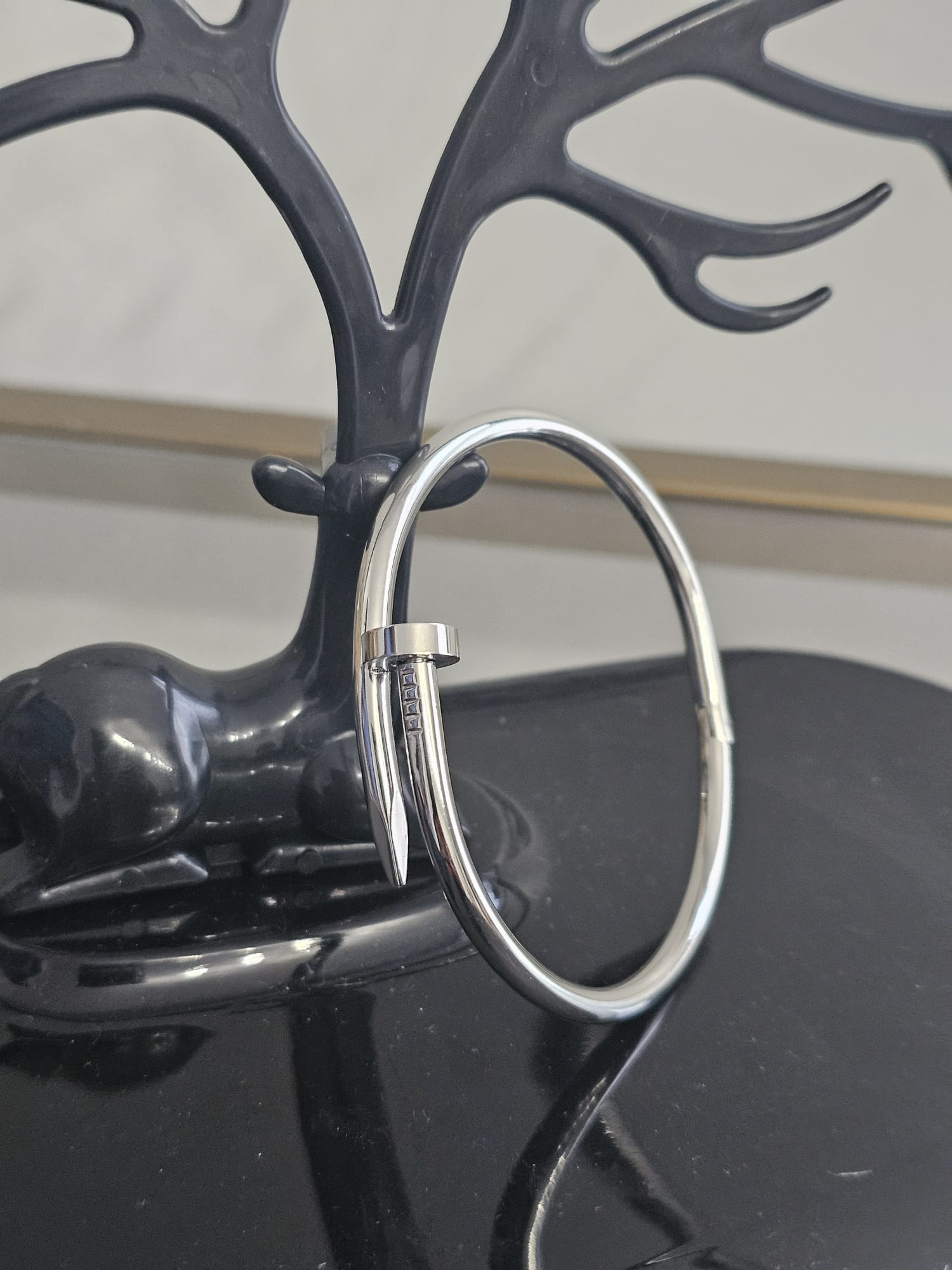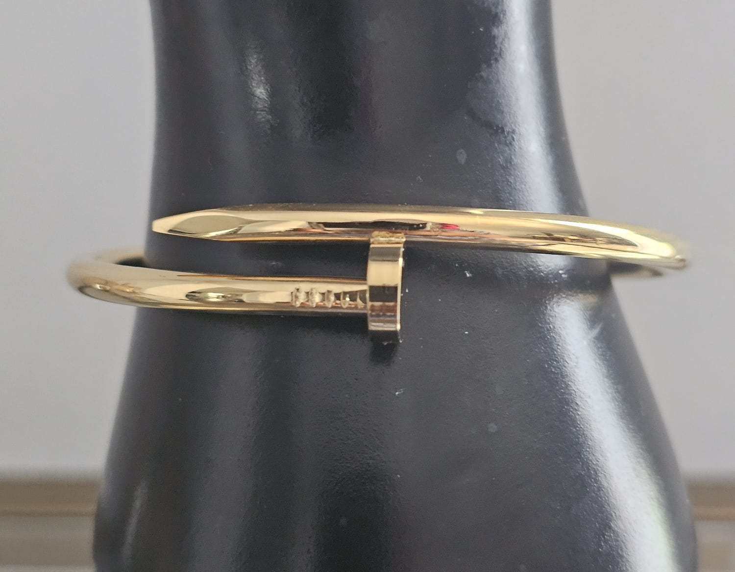 The Nail Chic Bracelet is a bold and contemporary accessory crafted from high-quality stainless steel, designed to make a striking statement. This bracelet features a sleek, fully connected band that emulates the streamlined form of a nail, blending modern elegance with a touch of edgy sophistication. The Nail Chic Bracelet combines the durability and shine of stainless steel with an innovative design that mimics a nail, creating a unique and stylish piece that stands out in any jewelry collection.
