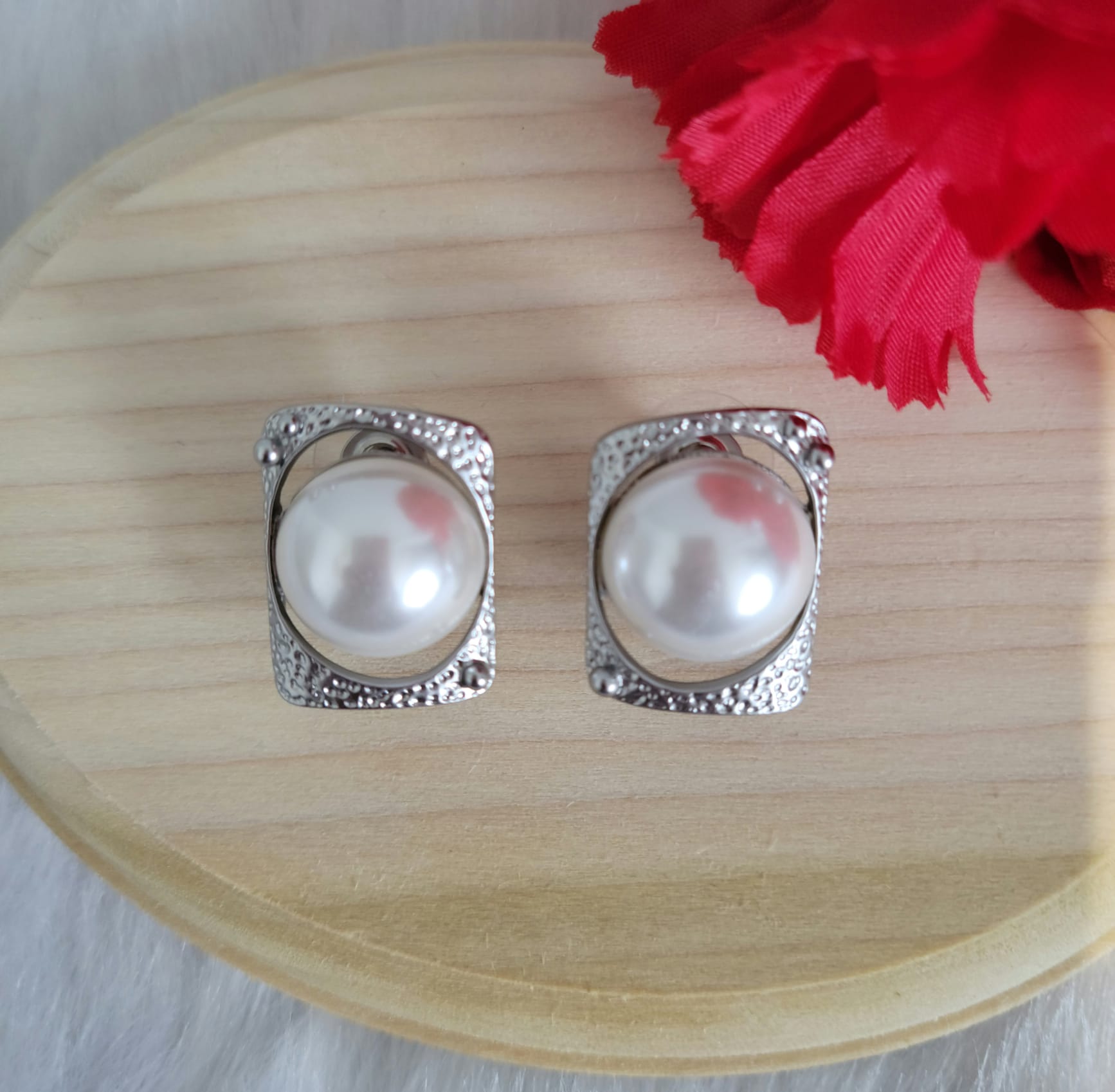 The Pearl Enchantment Earring is a captivating piece of jewelry that combines the timeless elegance of a pearl with the intricate beauty of textured stainless steel. At the center of each earring sits a lustrous pearl, radiating a soft, natural glow. Surrounding the pearl is a meticulously crafted stainless-steel setting, featuring a textured design that adds depth and character to the piece.