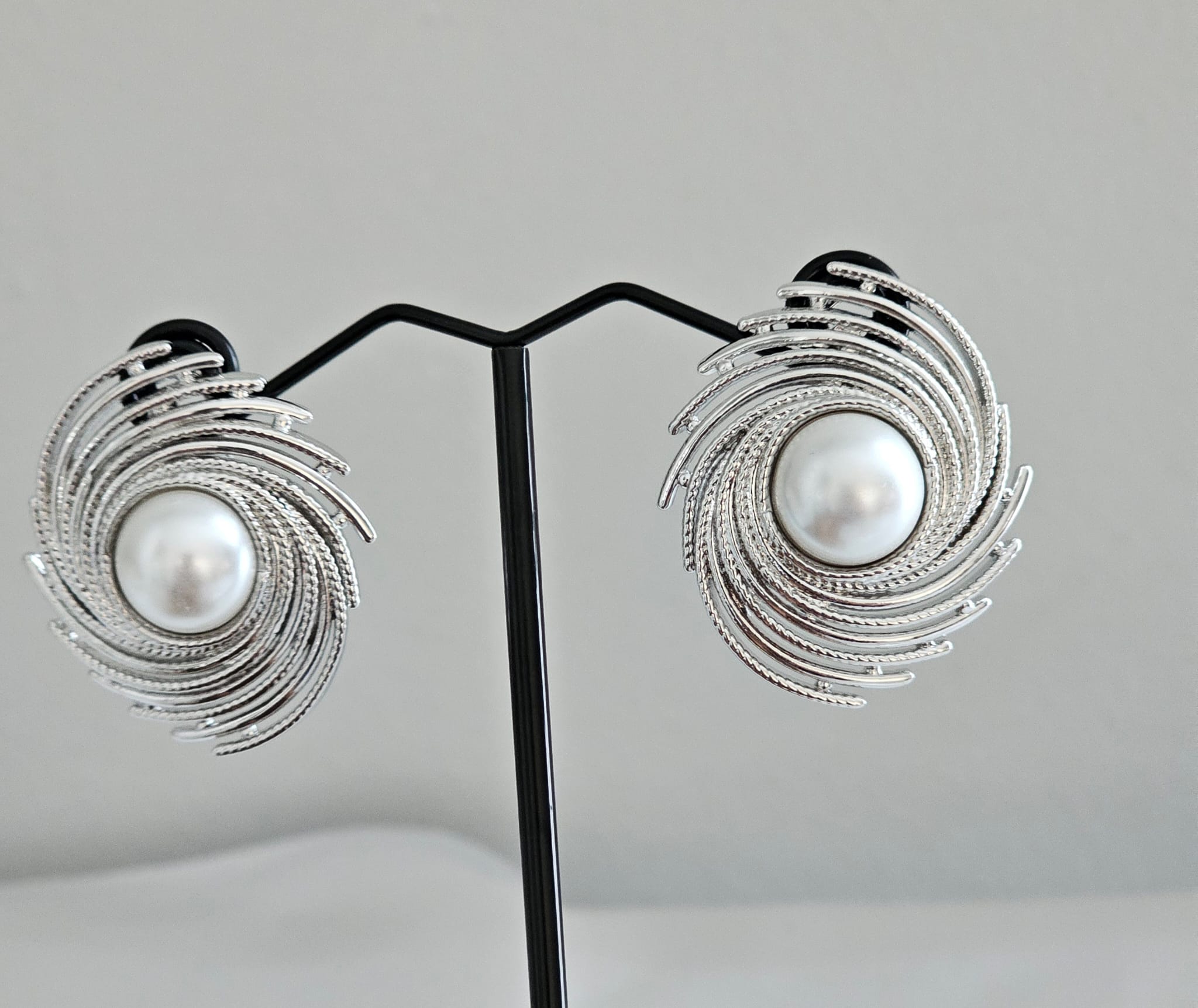 Crafted from high-quality, non-tarnish silver, this earring ensures lasting shine and durability, making it a perfect addition to any jewelry collection. The combination of the spiral motif and the central pearl creates a harmonious balance between modern design and traditional elegance.