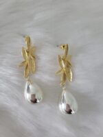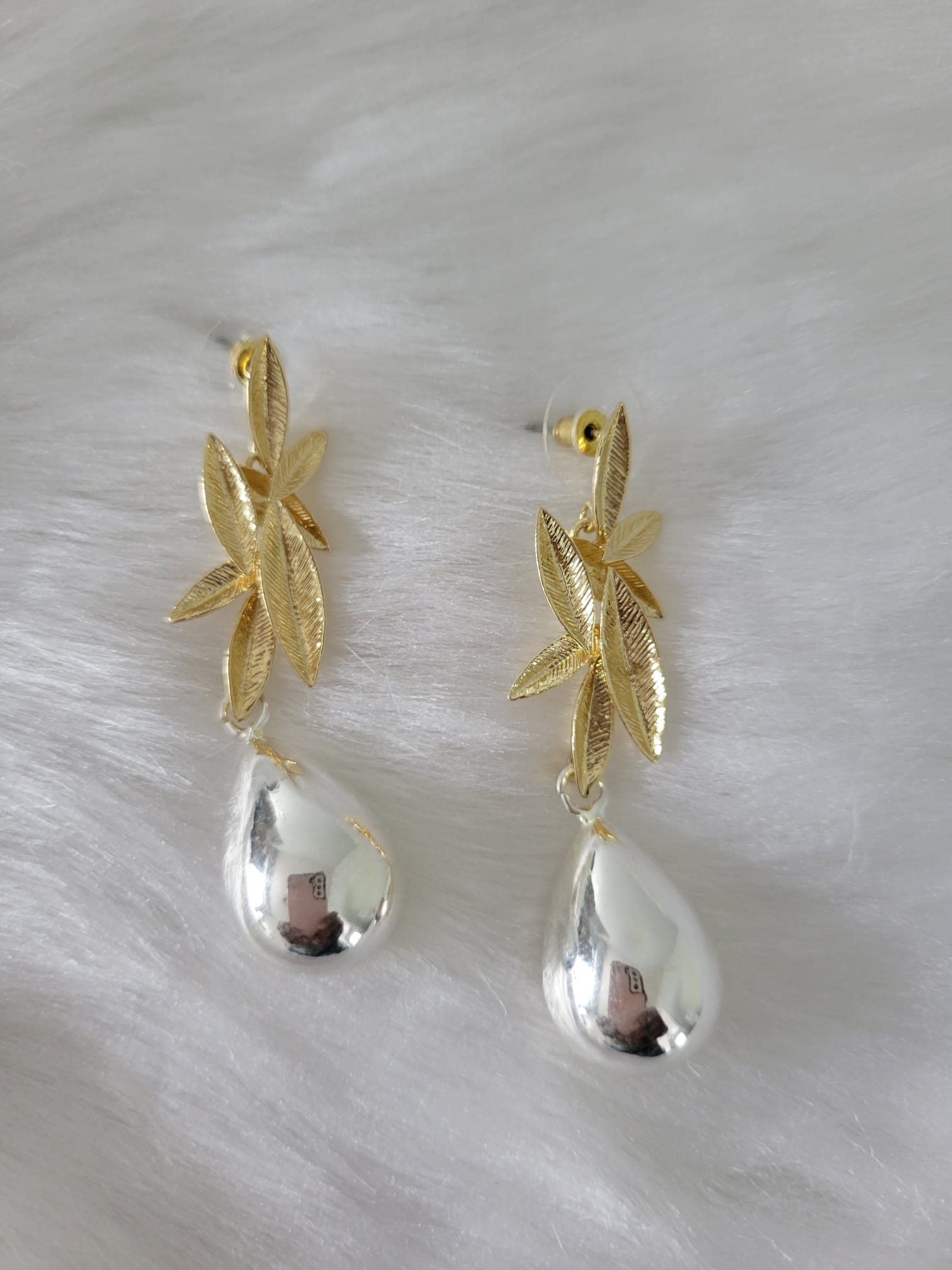 Petal Dewdrop is a captivating earring that beautifully combines the elegance of gold and silver. At the top, delicate flower petals are intricately crafted, each petal showcasing a fine texture that catches the light and adds a touch of sophistication. The gold-plated finish ensures a luxurious shine, while the non-tarnish coating guarantees that these earrings will maintain their brilliance over time.
