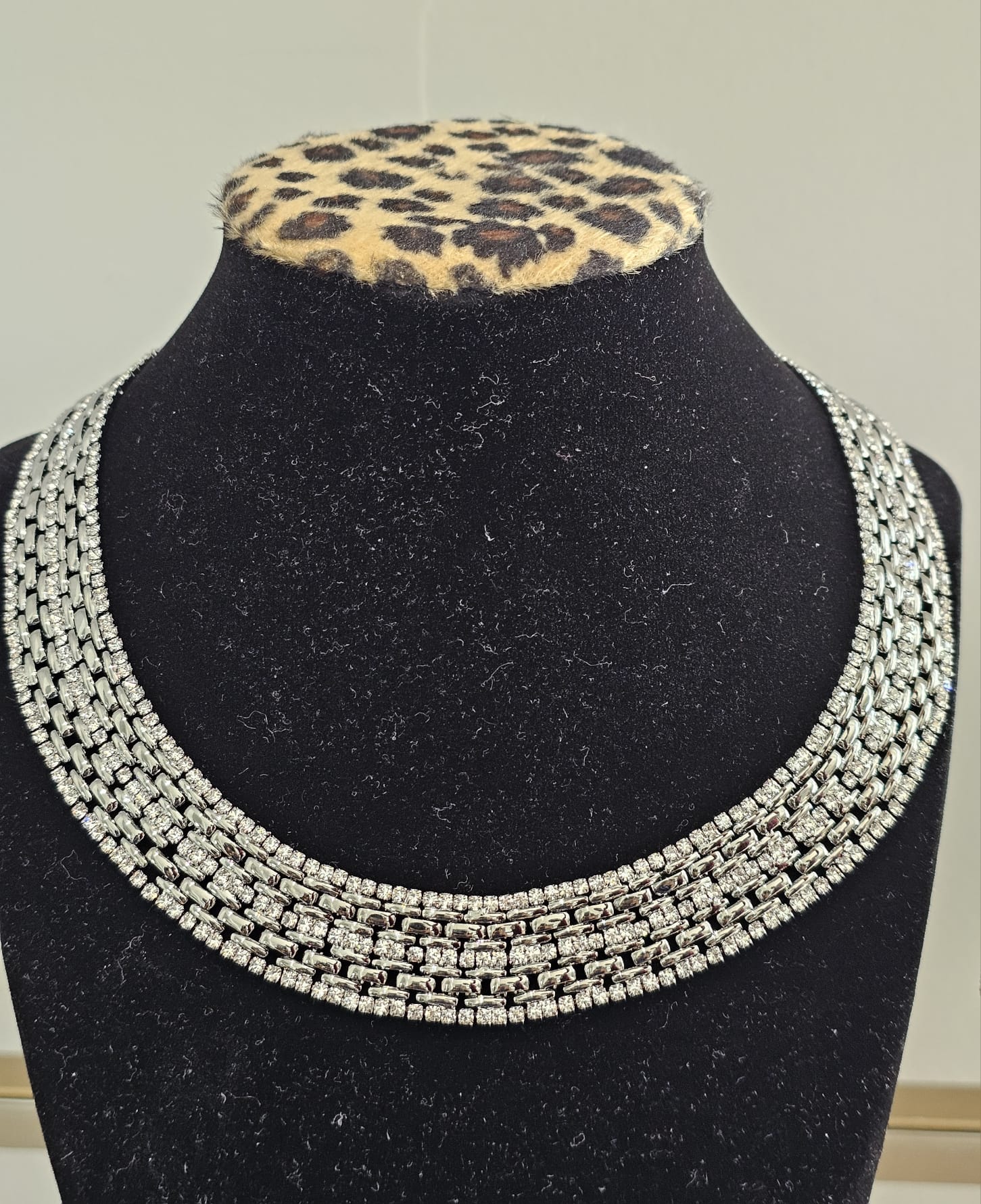 This 2 in 1 two-toned party necklace with earrings is a chic and versatile jewelry set designed to make a bold statement at any event.
