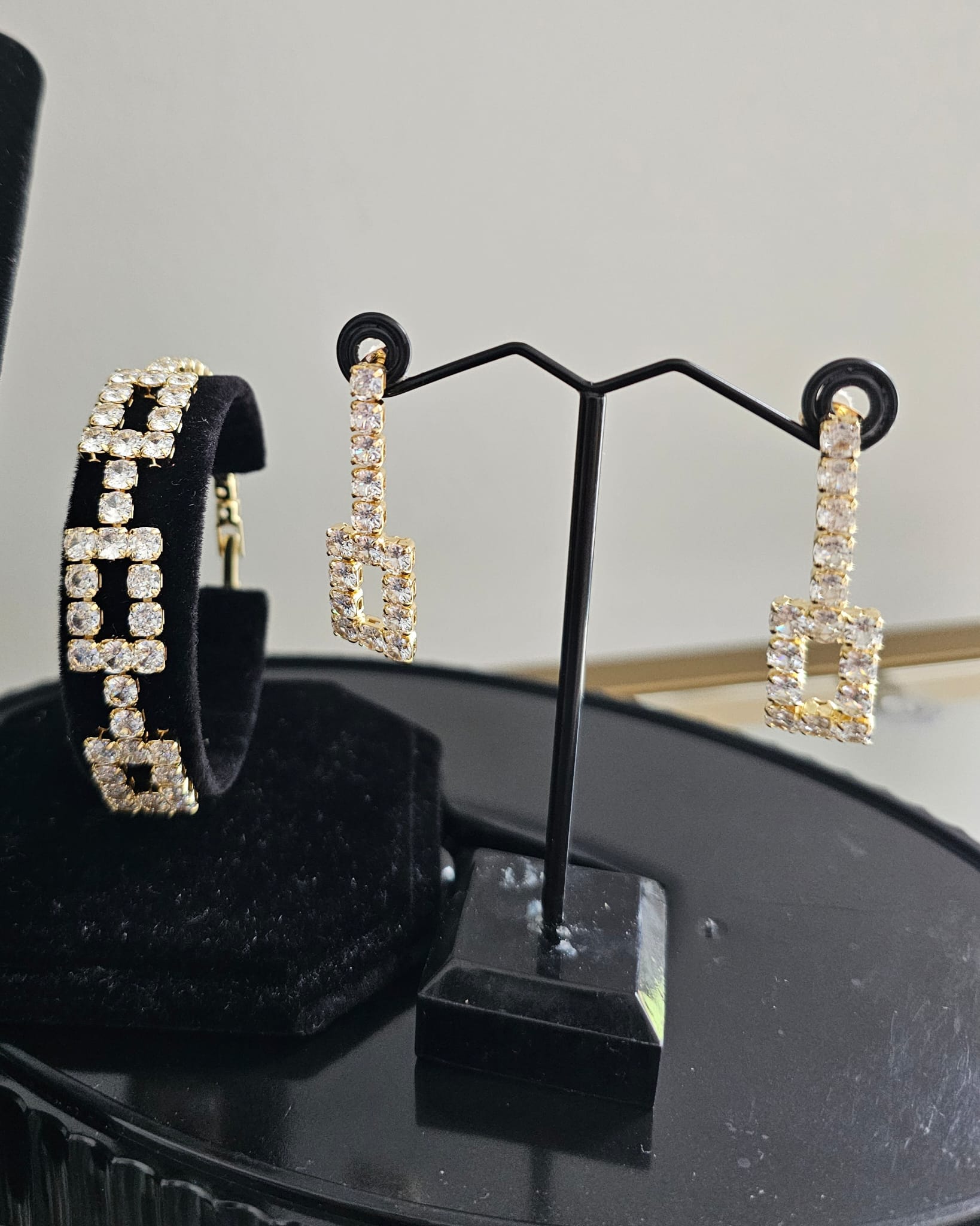 The Square Sophistication Trio is an elegant jewelry set crafted from stainless steel and adorned with faux diamonds, designed to offer a chic and modern aesthetic. This trio includes a necklace, bracelet, and earrings, each featuring distinctive square elements for a cohesive and stylish look. Each piece in the set is made from high-quality stainless steel, known for its durability and resistance to tarnishing. The steel is finished with a polished surface, providing a sleek and contemporary look that complements the faux diamonds.